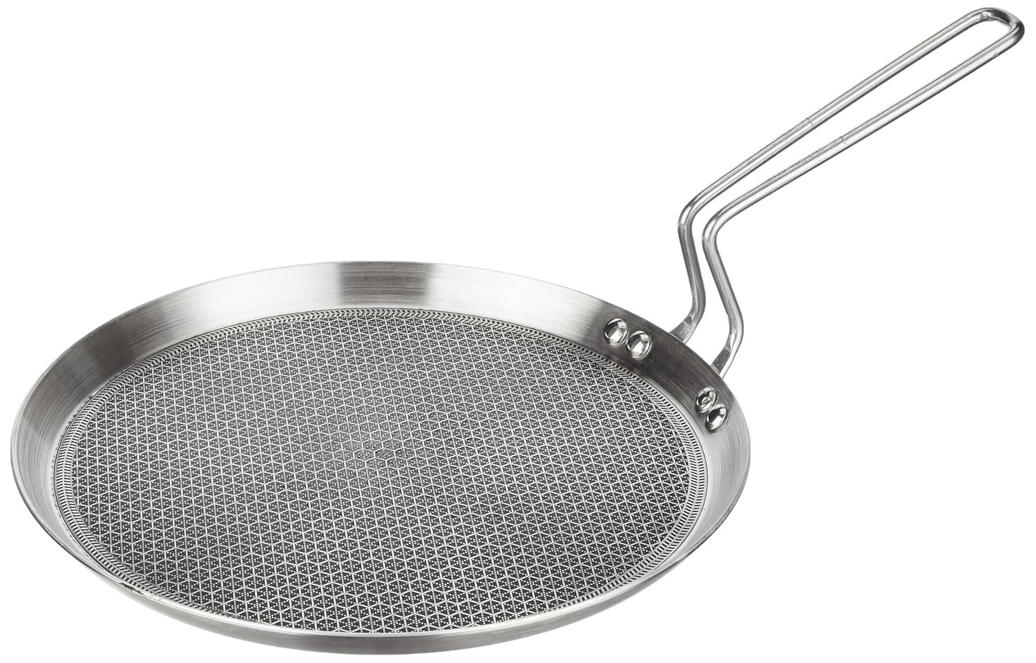 When used correctly, both cast iron and tri-ply stainless steel develop excellent cooking performance. Proper heating, oiling, and seasoning help prevent sticking.